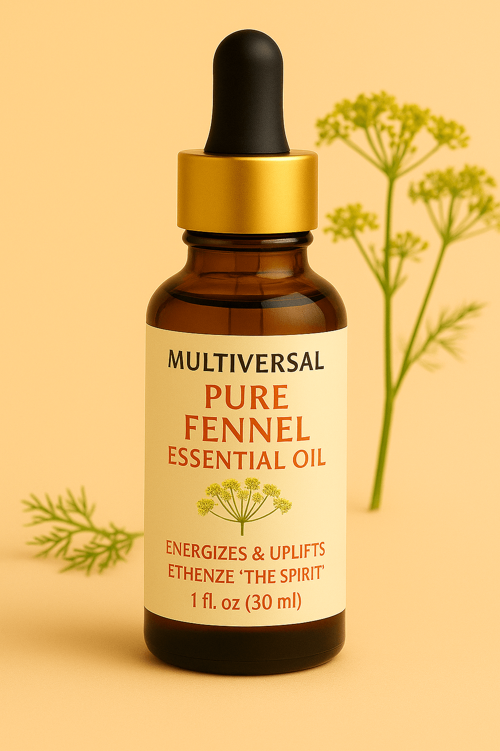 Multiversal Fennel Essential Oil is a sweet, herbaceous oil known for its digestive support, detoxifying properties, and hormonal balance benefits. Ideal for aromatherapy, massage, and wellness routines.