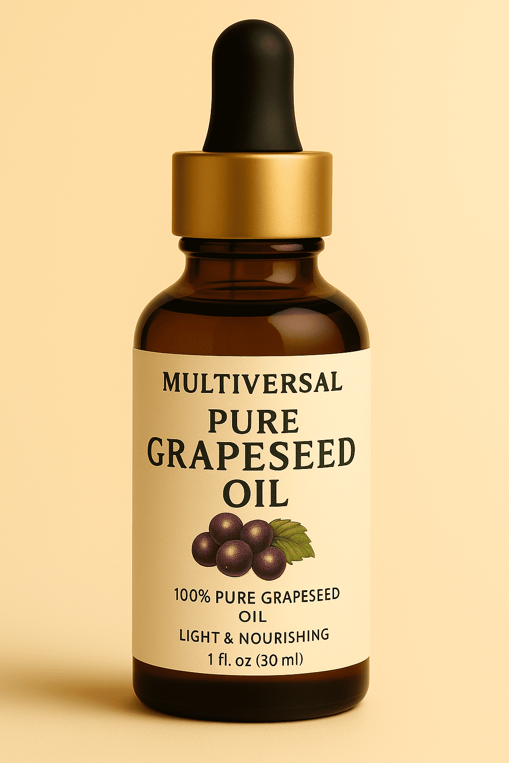 Multiversal Grapeseed Oil is a light, nourishing oil packed with antioxidants and essential fatty acids. Perfect for moisturizing skin, strengthening hair, and supporting overall wellness. Cold-pressed for maximum purity and effectiveness.