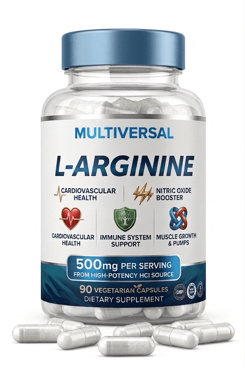 Multiversal Pure L-Arginine Capsules are a high-quality dietary supplement designed to support blood flow, energy levels, stamina, heart health, and recovery. Powered by L-Arginine amino acid, this formula helps boost nitric oxide production for better circulation and performance.