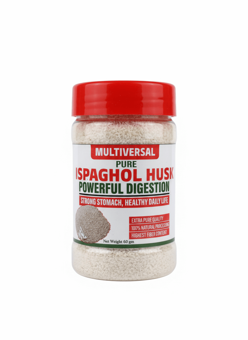 Support your digestive wellness with Multiversal Pure Ispaghol Husk (60 g) — a premium source of natural soluble fiber, carefully selected, triple-cleaned, and hygienically packed to deliver purity and maximum health benefits.